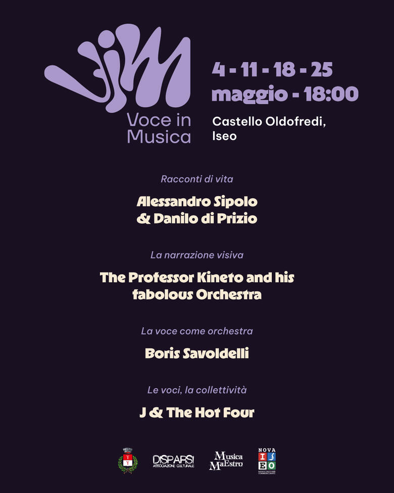 il nostro primo evento!Dal 4 al 25 maggio per tutte le domenica in Castello Oldofredi a IseoQuattro serate dedicate all’esplorazione dell’utilizzo della voce nella musica. L’intento è di offrire al pubblico un viaggio sonoro unico, dove la voce si trasforma in strumento, narrazione e connessione emozionale, diventando protagonista assoluta.Ogni serata propone un diverso approccio alla voce, valorizzando la sua versatilità e il suo potere espressivo: dal racconto di storie attraverso il canto, alle sfumature cinematografiche, fino all'utilizzo della voce come puro strumento musicale e come parte integrante di esibizioni corali.ViM si pone l’obiettivo di creare un percorso di scoperta che inviti il pubblico a immergersi in un’esperienza multisensoriale, capace di stimolare l’ascolto profondo e la riflessione su come la voce, in tutte le sue forme, sia un veicolo artistico universaleViM vuole avvicinare il pubblico a nuove forme di espressione vocale e musicale, stimolando la curiosità e l'interesse per generi e tecniche poco esplorati nei circuiti tradizionali.